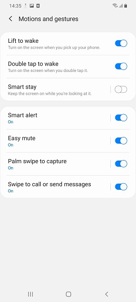 Подобни промени ще забележим и в менюто движения и жестове. Опцията умно оставане все още е налична, но е с ново име – “Keep screen on while viewing.”