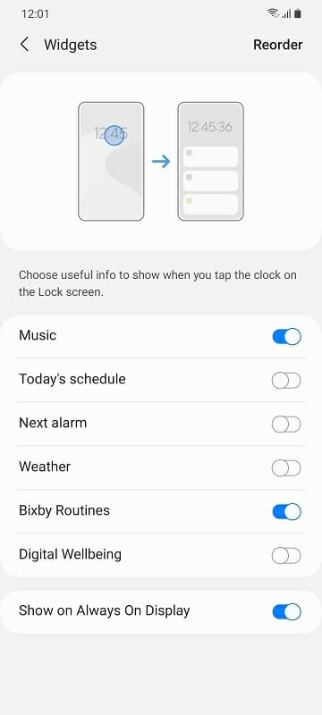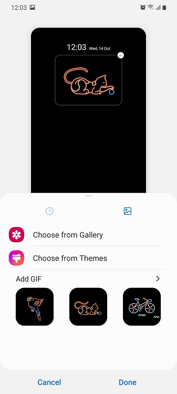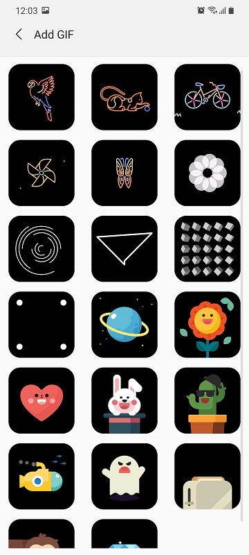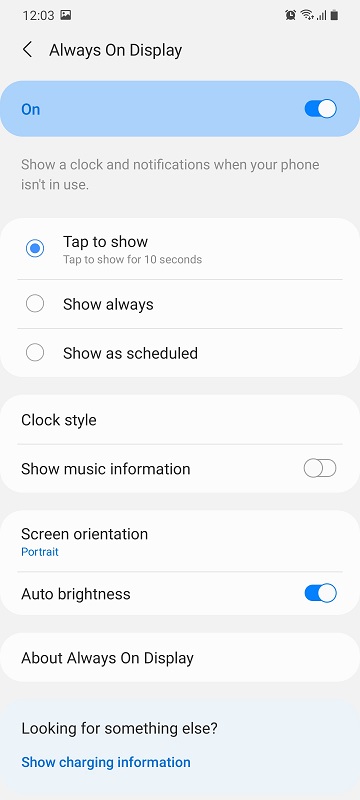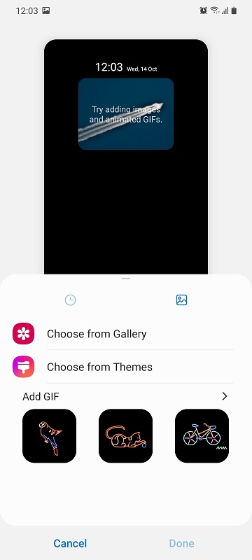 Функцията Always On Display изглежда идентично с предходните версии на One UI. Персонализацията в приложението обаче е била подобрена. Компанията е добавила повече опции и по-конкретно свързани с GIFs файловете (анимациите). Анимациите започват да се възпроизвеждат автоматично, когато телефонът е заключен, но спират след няколко секунди.
