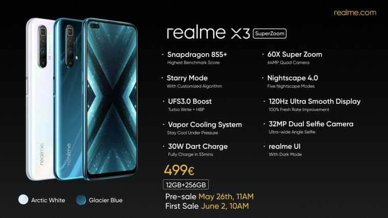 На грандиозно събитие в рамките на два дни – на 25 май за Китай и Индия и на 26 май за Европа – Realme – представиха своето фото бижу в колекцията за 2020г. – Realme X3 SuperZoom.