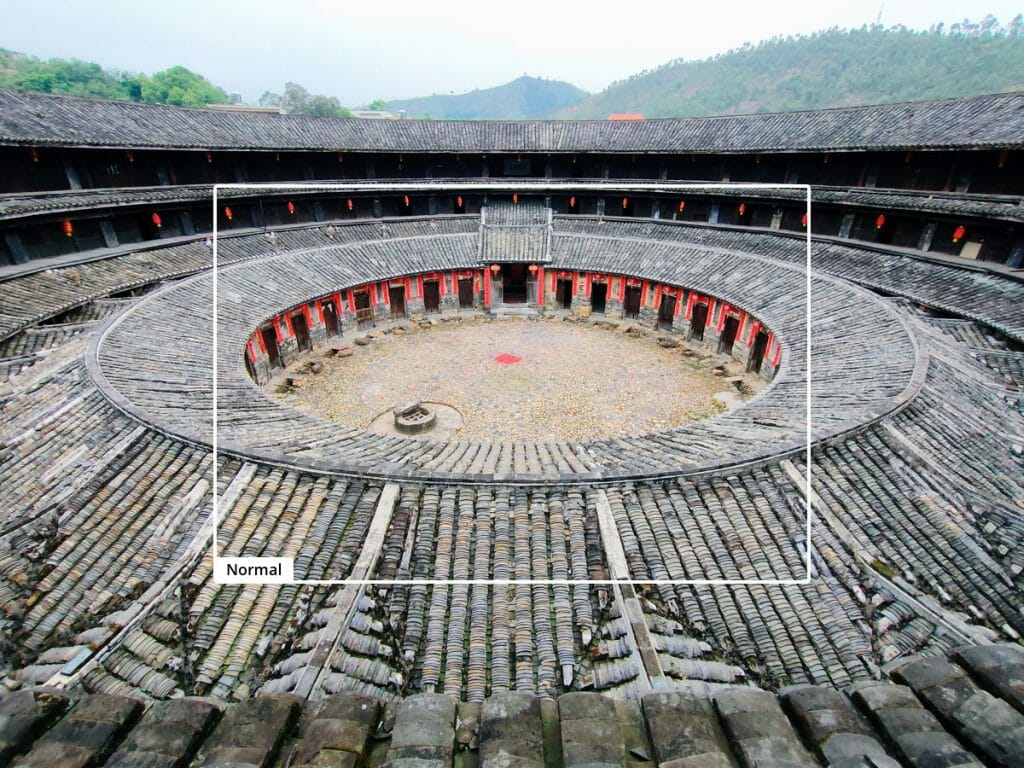 Ултраширокоъгълният сензор е с резолюция 8 MP и 119° ъгъл на заснемане. На изображението по-долу е видно какъв обхват би имало изображение с основния и с ултраширокоъгълния сензор: