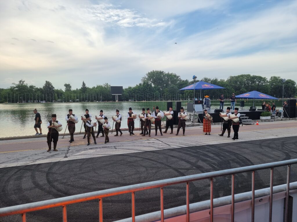 Откриването бе феноменално по български – с множество гайди – прегърнати от жени, мъже и деца, които величествено и тържествено озвучиха терена, за да го подготвят по-късно за оглушителния рев на мотора на болида (част от изпълнението с кадри отблизо ще видите в клипа).