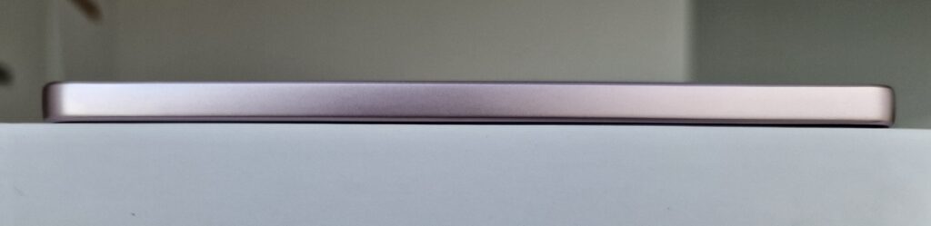 Задният панел е изработен от стъкло с матов финиш, поради което не задържа пръстови отпечатъци. Цветът Lite Pink прелива от синьо към розово, а под ъгъл става и златист и дори огнено оранжев. Другите налични цветове са ментово-зелено (Mint) и черно: