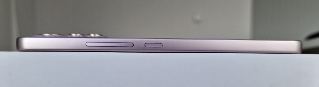 На дясната рамка са разположените двата бутона – за контрол на звука и Power бутона – за включване и изключване на телефона. В него НЕ е интегриран сензор за пръстови отпечатъци, което позволява и самият бутон да е по-малък – мъничък е, дискретен. Сензорът за пръстови отпечатъци е оптичен – под екрана – бърз и отзивчив. На лявата рамка няма нищо.