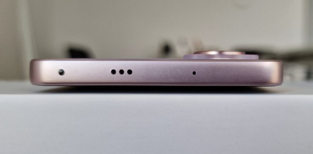 На долната рамка са разположени – основния микрофон, втория говорител, порта за зареждане и пренос на данни – USB Type-C, както и слота за SIM карти, в който могат да бъдат поместени 2 nano SIM карти и няма място за Micro SD карта за памет. Вградената памет не може да бъде разширена с външна.