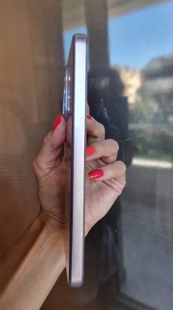 Комфортен е в ръката – въпреки плоската рамка и плоските преден и заден панел. Обичайно формираните ръбчета се усещат при захват и мен лично ме дразнят, но не и в този случай, вероятно защото самият телефон не е обемен.