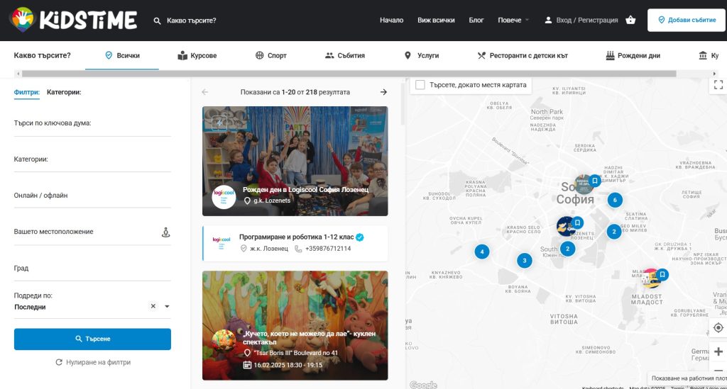 Всеки родител, който търси информация за събития за деца, локации за рождени дни, образователни курсове или подходящи за семейство с деца заведения, вече може да я намери на едно място. Това е новата онлайн платформа Kidstime.bg, която има мисията да помага на родители и деца да организират по-пълноценно свободното си време.