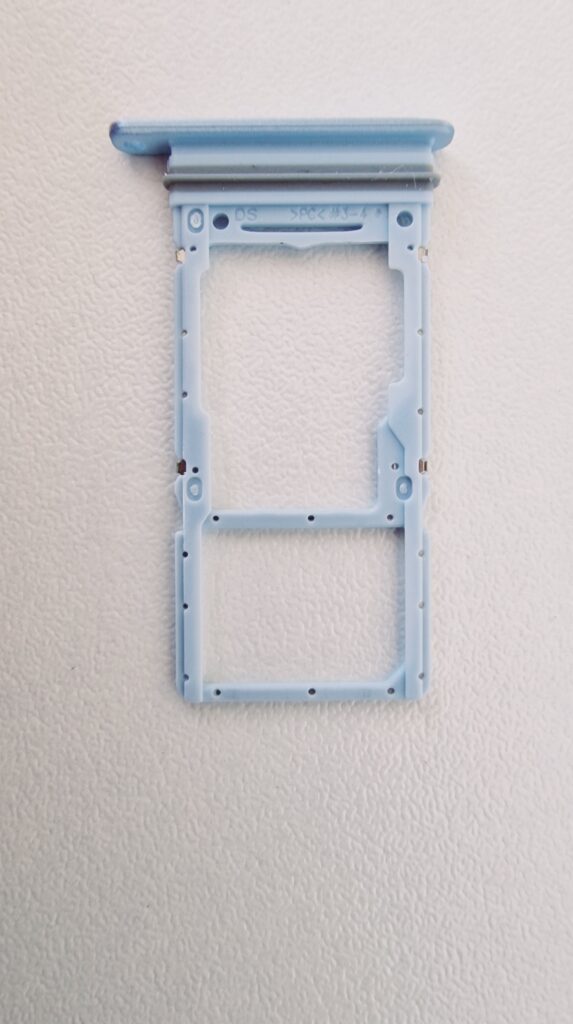 На горната рамка е предвидено и място за карти. Слотът, както се вижда от снимката по-долу, е хибриден. В него можете да поместите – две карти – една SIM карта и една карта за памет (1TB) или две SIM карти.