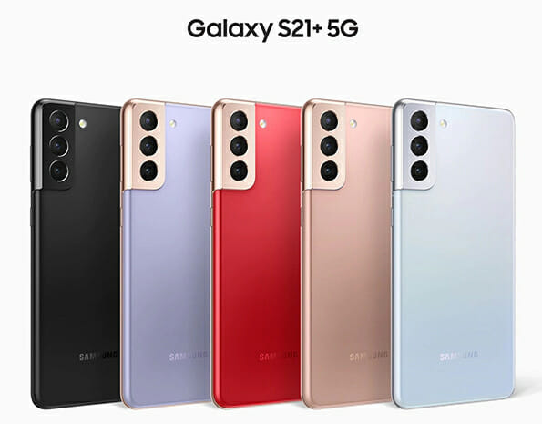 - Galaxy S21+: Phantom Black, Phantom Silver, Phantom Violet, Phantom Pink, Phantom Red