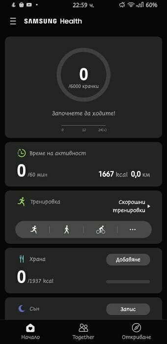 В най-новата версия на приложението Samsung Health 6.9.0.051 вече е наличен тъмен режим. За да го активирате, е нужно да се включили тъмния режим за системата от Настройки => Дисплей => Тъмен режим. Новата версия все още не е налична в Play Store, но може да я свалите и инсталирате ръчно от Apk Mirror.