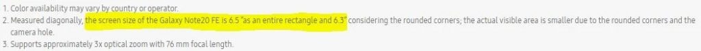 Подобен ход предполага да бъде реализиран и модел Galaxy Note 20 Lite или Note 20 FE. На официалната страница на Galaxy S20 FE от Samsung Бразилия бе споменат модела Galaxy Note 20 FE – в ситния шрифт, където се посочва размера на екрана – 6.3 инча и 6.5 с включени извитите ръбове. Това разбира се може да е печатна грешка, но не е единствената.