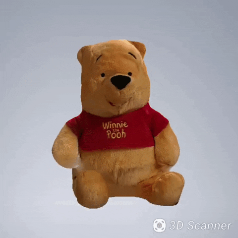 Ето и един нагледен пример, до колко добре се получава сканирането на обекти и предмети. Първата снимка е предмета който е сканиран, в случая плюшено мече. Във втората е под формата на gif анимация, след като вече е сканирано.