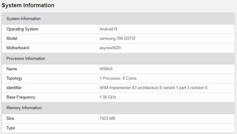 В популярния сайт за бенчмарк тестове geekbench се появи модела Galaxy S10+ (SM-G975F), работещ с операционната система Android R. Както знаем, Google следва азбучно наименование и следователно следващата версия ще се нарича Android 11 R.