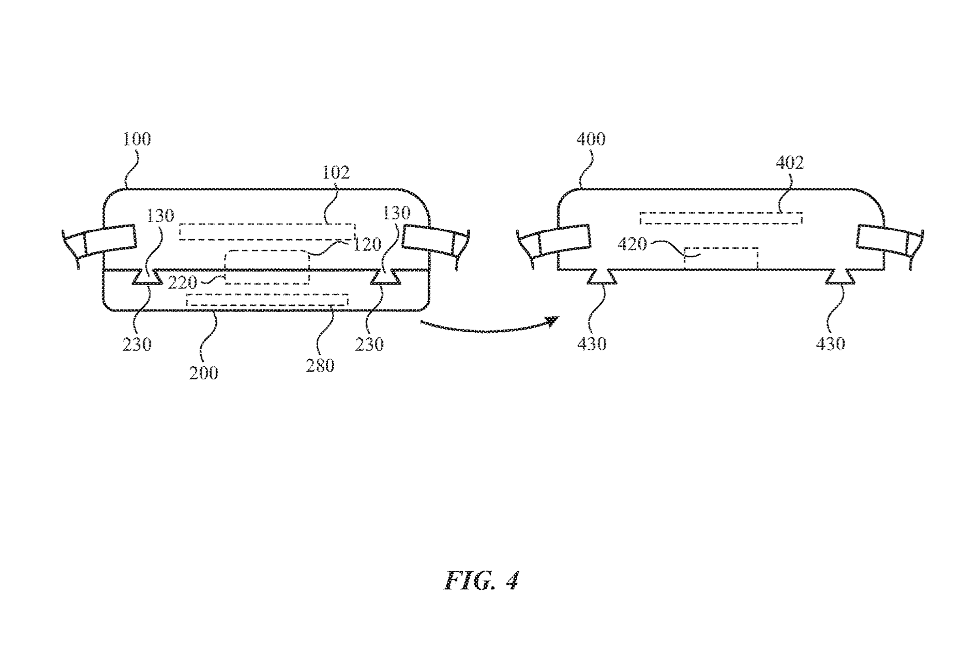 Apple не изключва реализацията на Apple Watch с възможност за разширяване на функциите. Компанията превъплати тази своя идея в нов патент, който е регистриран в Американското ведомство за патенти и търговски марки. За разлика от идеите за модулни смартфони, които трябваше да предлагат възможност за премахване и замяна на хардуерни компоненти като камери, памет и процесор, Apple предлагат на потребителите нещо съвсем различно. Те няма да заменят едни компоненти с други, а ще могат да ги добавят към устройството. Нещо като Moto Mods на Motorola.