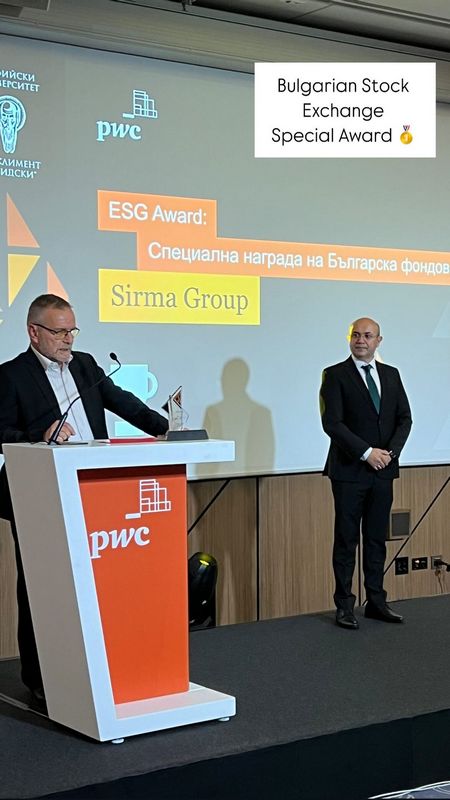 Българската софтуерна компания Сирма Груп бе удостоена със специална награда за своя значим принос в областта на екологичната, социалната и корпоративната отговорност (ESG).