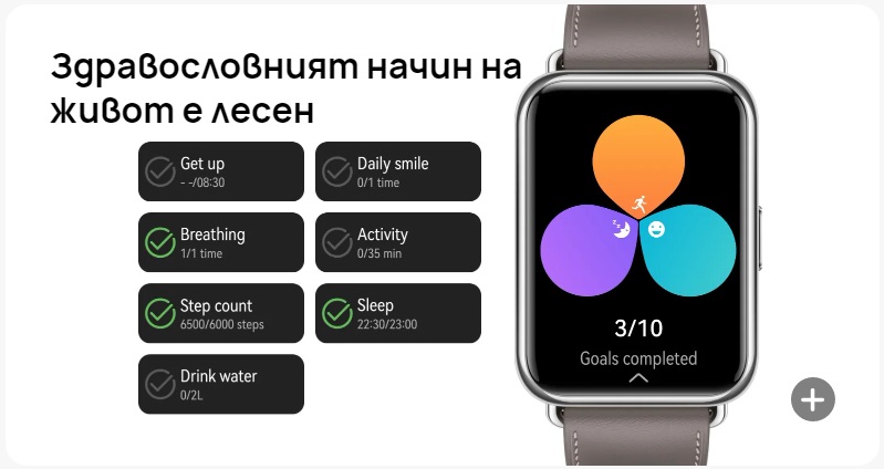 - Проследяване на здравето с HUAWEI WATCH FIT 2