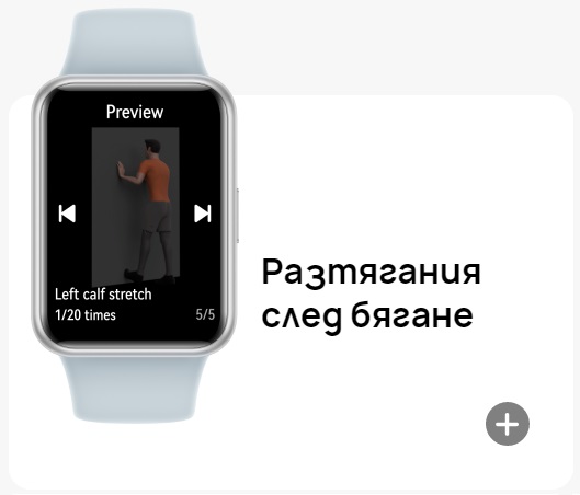 Новият модел HUAWEI WATCH FIT 2 следва тази линия, като насърчава потребителите да водят по-активен начин на живот. За тази цел са достъпни нови упражнения чрез анимирани фитнес курсове, режими на тренировка и функции за проследяване на здравето.