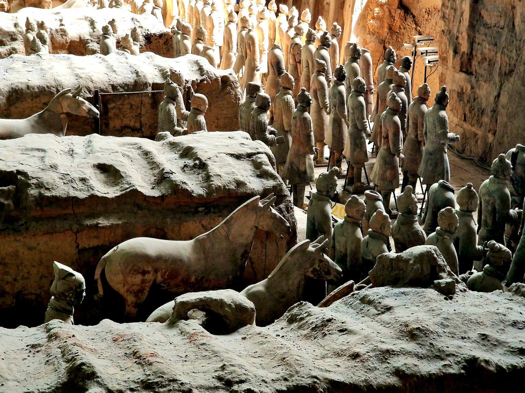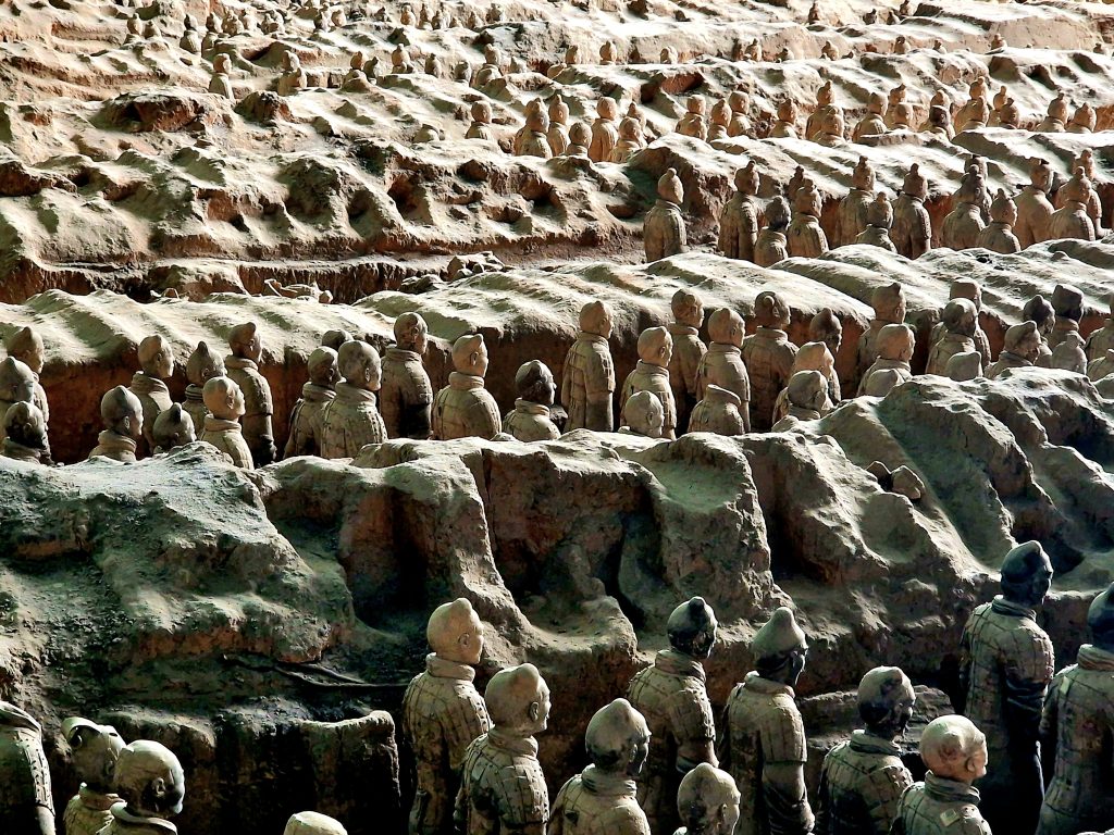 Ено от тях е Теракотената армия – безмълвната стража на първия китайски император Цин Шъхуан, погребана под земята в продължение на над 2000 години и открита случайно през 1974 г. от местни фермери в покрайнините на Сиан.