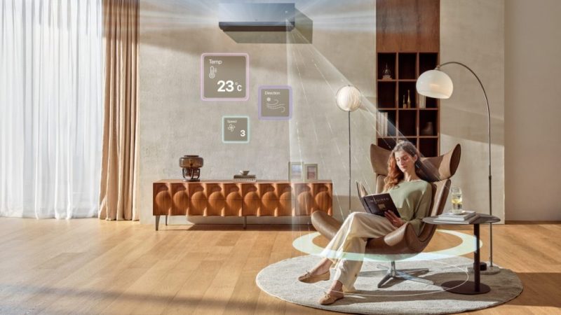 • Неговият режим AI Air интелигентно регулира силата и посоката на въздушния поток в реално време, като взема предвид разположението на стаята и позициите на хората.