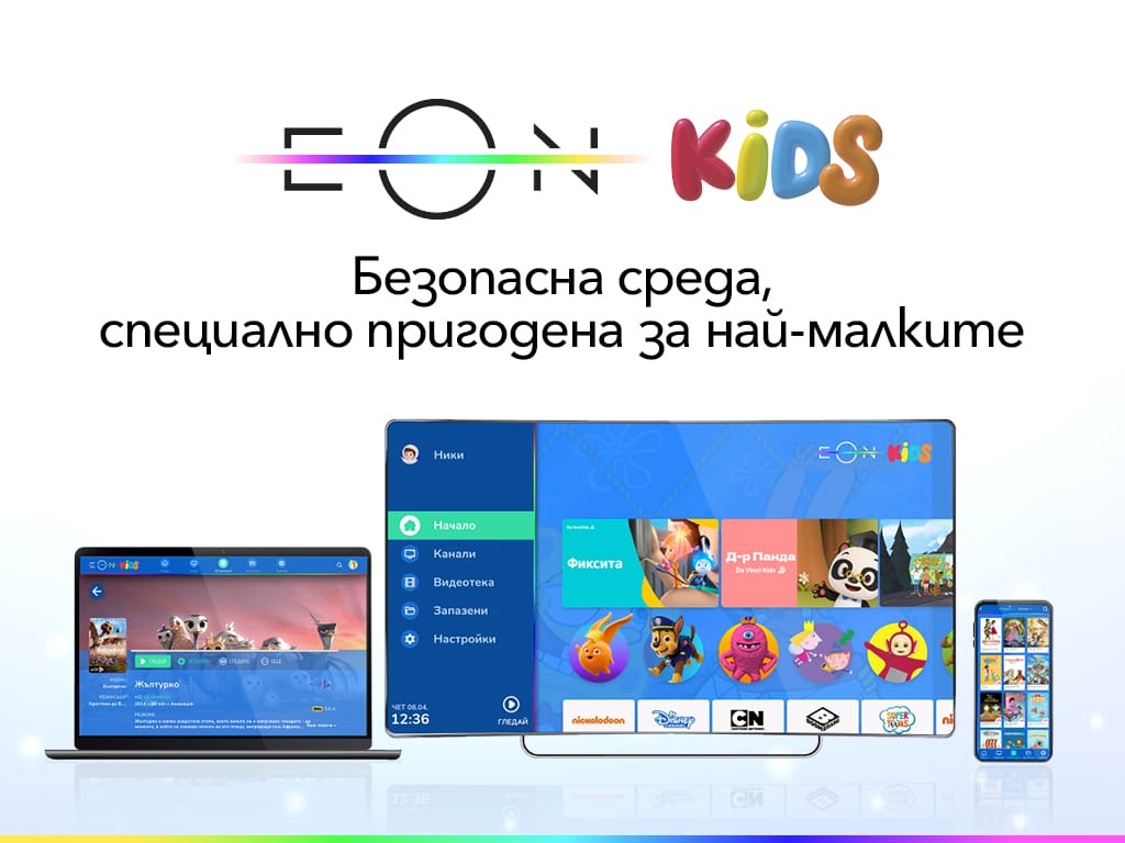 Всички детски каталози и селекции са налични и в защитения детски профил EON Kids. В него те могат да управляват лесно и удобно своя профил и да се забавляват с интересно и образователно съдържание.