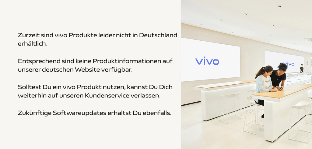 От компанията обявиха на своя уебсайт, че „продуктите на Vivo в момента не се предлагат в Германия“, но заявяват, че ще продължат да поддържат устройствата на клиентите, които вече са закупили такива в страната.