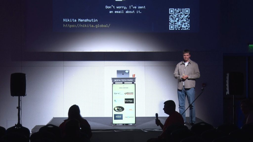 В своята презентация Никита разгледа прехода от работа като фрийлансър към присъединяване към офисен екип, като лекторът сподели своя личен опит от над 10 години като фрийлансър, 1 година като Middle разработчик и 3 години като Senior разработчик.