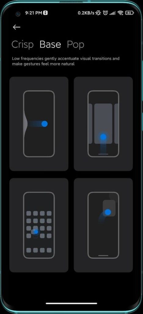 Еластичната обратна връзка Pop ще се задейства, когато отворите контекстните менюта. Четвърта реалистична обратна връзка с докосване ще се задейства, когато взаимодействате с известия, отключите устройството си със скенера за пръстови отпечатъци или когато натиснете бутона за захранване.