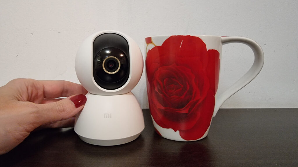 Камерата Mi 360º Home Security Camera 2K е с размери 115 × 78 × 78 mm и тегло 269 / 310 грама. Приблизително е колкото чаша за чай с вместимост 250 мл: