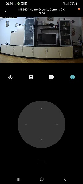 Камерата може да се управлява от приложението – интерфейсът е user-friendly. Както се вижда от екранната снимка по-долу – под миниатюрата – какво вижда камерата са достъпни четири бутона със следните икони: