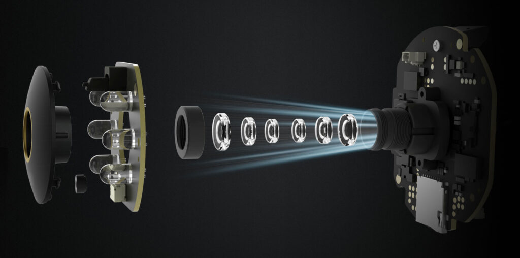 Камерата работи и в пълен мрак (Night Vision), благодарение по-голямата бленда (F 1.4) и инфрачервената светлина IR – 940мnm. Няма видимо червено сияние, което да пречи на съня Ви. Сензорът за изображения е с висока чувствителност и ще разполагате с цветно видео дори дори при слаба светлина.
