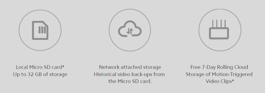 Облачното съхранение е безплатно до 7 дни. Съхраняват се 10 секундни видеа от засечено движение на всеки 3 минути – 30 минути. При трансфера данните са криптирани.