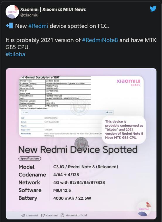 Нов модел на компанията с номер M1908C3JGG се появи във FCC (Federal Communications Commission). Изглежда потвърждението за подобен модел е дошло и от самата компания, разкрива популярен лийкър в Twitter. Не се знае точно от коя страница идва информацията, но в миналото потребителя се е доказал с достоверна информация.