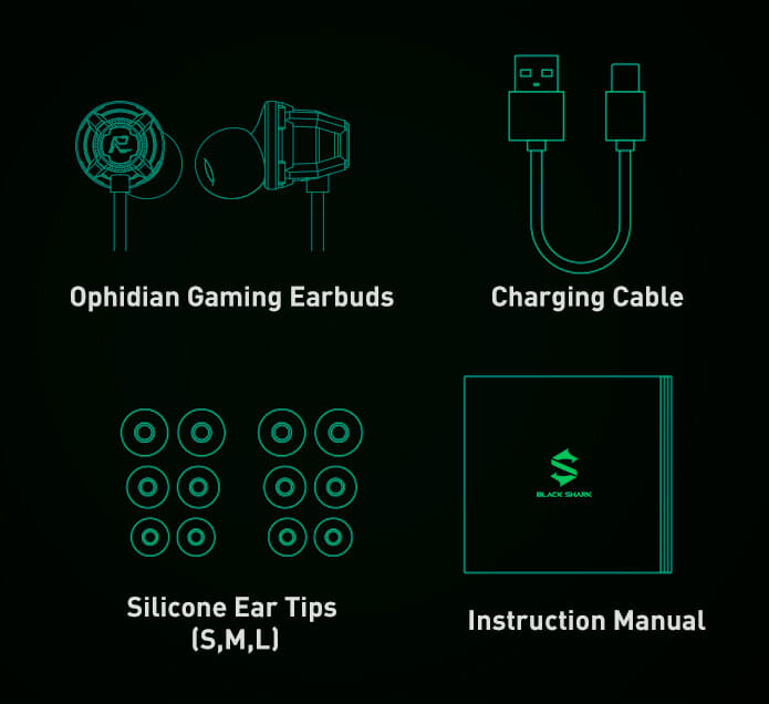 Дни преди старта на продажбите на геймърския смартфон Black Shark 3, Xiaomi представиха и слушалките Black Shark Ophidian Gaming Earbuds. Отличават се с изключително ниска латетност – само 58ms, което осигурява добър синхрон между устройството и звука, и дава възможност да чуем това, което се възпроизвежда на екрана без лаг:
