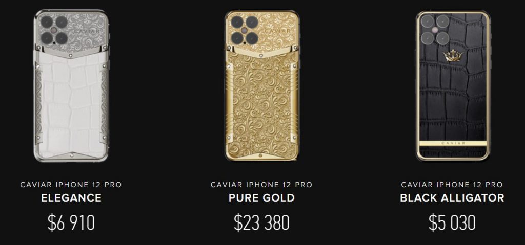 Телефонът е покрит с 18 каратово злато с флорални мотиви в руски стил и нови името Caviar iPhone 12 Pro Victory Pure Gold. За по-голям разкош са добавени и 8 диаманта (0,48 карата диаманти (F / SI1).