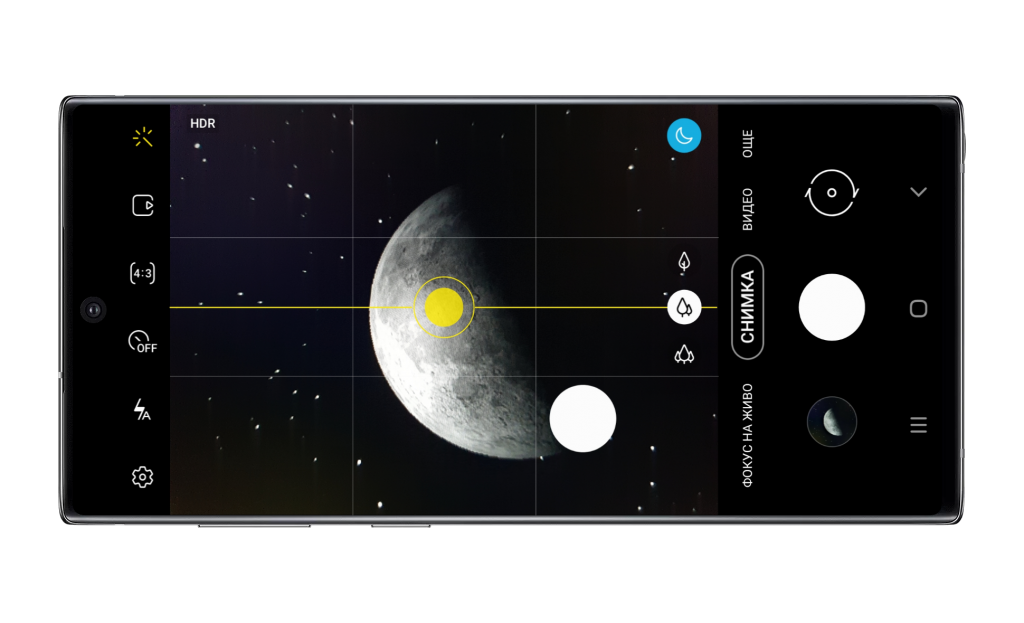 Първо, не очаквайте чудеса от този режим. Тук има още какво да се желае, но е хубаво да знаем, че от Samsung мислят и за “нощната фотография”. Този режим може да бъде използван като просто включите режима за оптимизиране на сцената и насочите камерата към луната. Вероятно обаче няма да откриете голяма разлика с и без него.